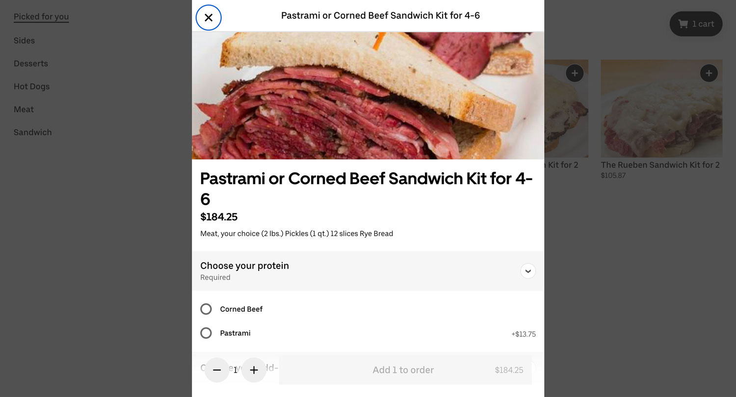 Sure, I could go on about how I would’ve liked to see Uber Eats glean from DoorDash and Goldbelly’s merchant pages and find a way to better fold in shipping information, and storage and cooking instructions.